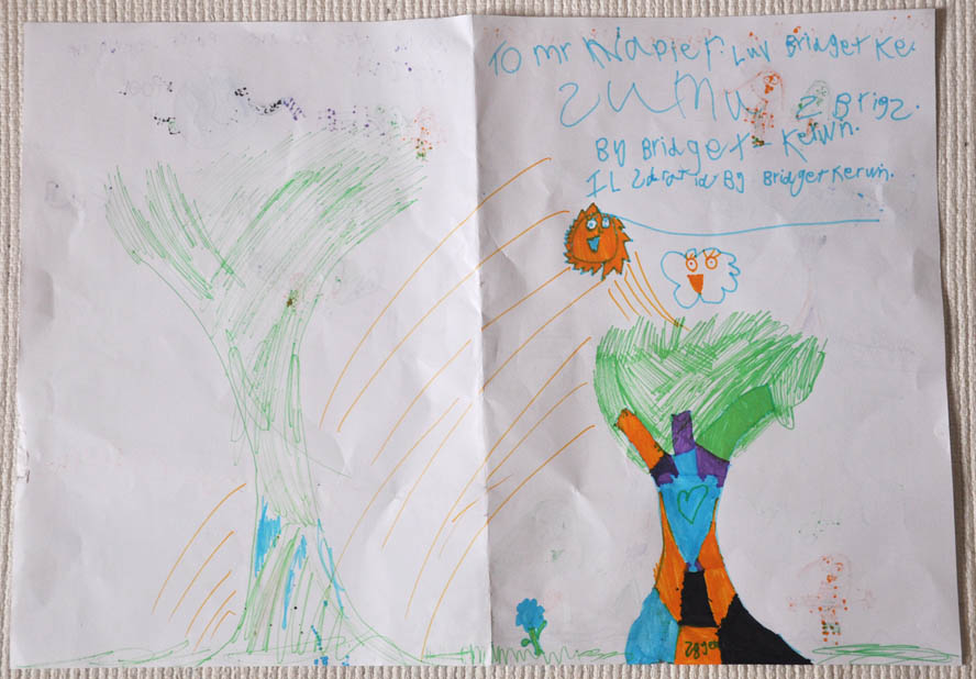 to day I had A Esdor hat prade. wot wos yor favrit thing to day? my faverit thing to day wos wen Mr. O'Kan dresd up as the Esdor buny. any thick als? yes I like the Esdor eggs. from bridget I am 6. I cum from Australia. ps any thick als? yes Esdor hats and wining rafall - tickit pris aws is litall.